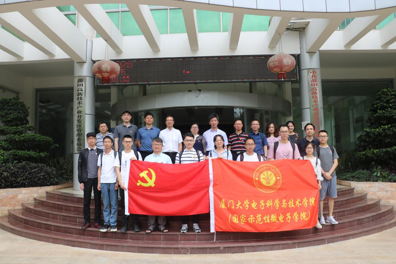 为切实加强电子科学与技术学院与莆田市的交流联系,增强学院博士生服务地方发展的实践能力,丰富党史学习教育形式,学院“芯青年”博士团于5月21日赴莆田市涵江区、荔城区开展党史学习教育和电子信息行业调研活动。“芯青年”博士团由学院党委书记吴国瑛带队,学院党委副书记方银水、闽江学者特聘教授杨伟锋、学院实验教学示范中心常务副主任高级工程师陈华宾、副教授吴挺竹、学院团委书记韩海雄、学院团委副书记刘锦锗和博士生一行共16人参加。