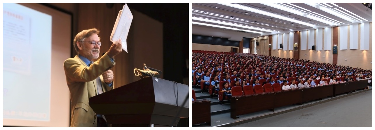 为贯彻落实习近平总书记致厦门大学建校100周年贺信和习近平总书记给《文史哲》编辑部全体编辑的回信精神,坚守“编书育人”根本任务,服务人才建设和区域发展,在新的时代条件下推动中华优秀传统文化创造性转化、创新性发展,弘扬中国精神,让世界更好认识中国、了解中国,5月25日,出版社联合海沧实验中学、教师进修学院,在海沧实验中学举行“‘不见外’老潘的中国故事”主题讲座,邀请感动中国2019年度人物、厦大出版社“魅力·老潘”系列图书作者潘维廉教授给老师、学生、出版社编辑们上一堂别样的思政课。