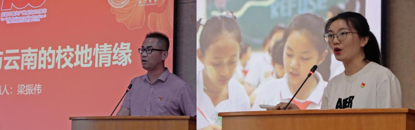 校团委副书记梁振伟在云南篇的分享中认为,新闻人要有沾泥土、带露珠的“脚力”,辨得清、判得准的“眼力”,政治敏感的“脑力”和百姓爱看爱听的“笔力”。博士生郭一鸣讲述了在云南德宏挖掘南洋华侨机工、厦大校友白雪姣投笔从戎、冒着炮火在滇缅公路运输抗战物资的英勇事迹和缅籍华人赵红仙老师教授中缅双语、传播中华文化的动人故事。郭一鸣认为,厦大人应当传承老一辈“爱国”、“革命”、“自强”、“科学”的精神,用青春告白祖国,用汗水铸就未来。