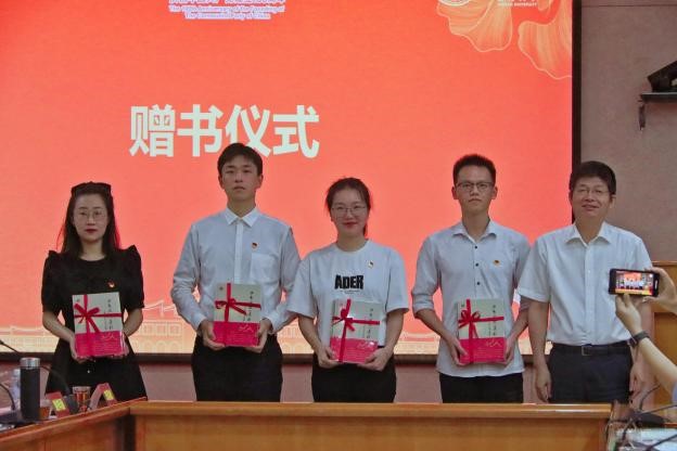 最后,徐进功副书记为”研习社”学生代表赠阅了《为吾国放一异彩——厦门大学与伟大祖国》一书,并作点评讲话。