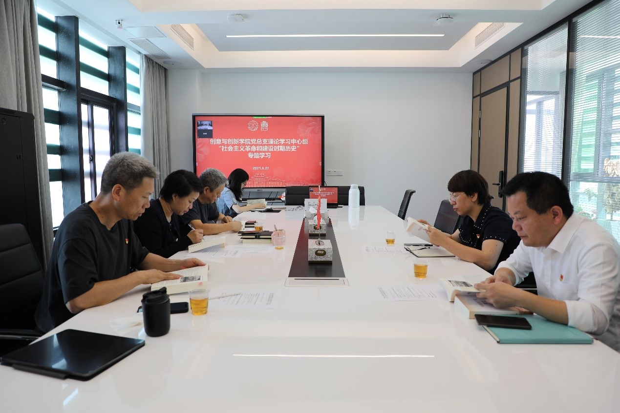 5月27日上午,创意与创新学院理论中心组成员围绕“社会主义革命和建设时期历史”主题,进行党史学习教育第二次专题学习研讨,学校党史学习教育第五指导组副组长葛郝锐参加。专题学习研讨会由学院党总支书记王艺主持,院长秦俭、副书记邹江涛、副院长甘森忠、黄琛与会。