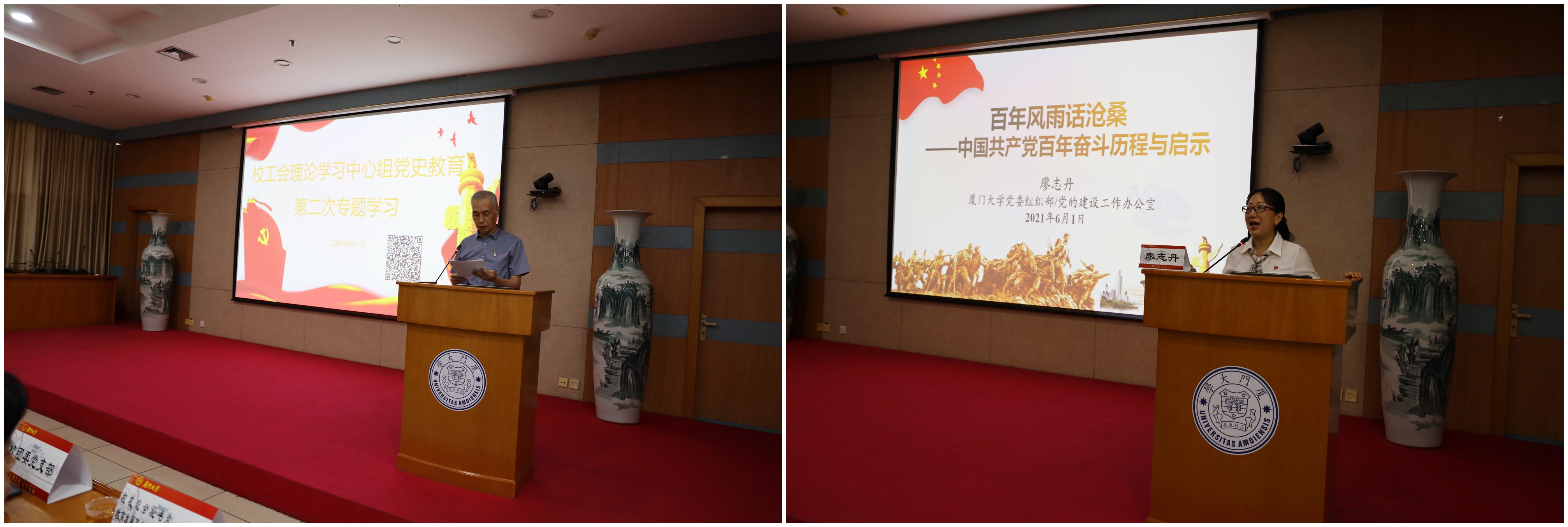 6月1日下午,校工会邀请校党委党建办主任、组织部副部长、教师工作部副部长,学校党史学习教育宣讲团成员廖志丹副教授为校工会理论学习中心组讲授题为《百年风雨话沧桑——中国共产党百年奋斗历程与启示》的党史专题党课。报告会由校工会常务副主席叶鹏飞主持。