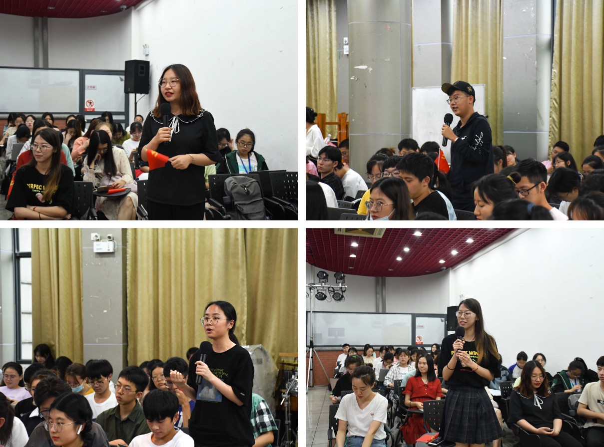 中国青年生逢盛世、肩负重任。老中青党员与入党积极分子对话既是一次勉励,也是一场接力。揭上锋老师和彭派同学用自身参军入伍的经历作为例子,阐述了青年大学生培养家国情怀、树立理想信念的重要性。彭派同学讲到自己研读《习近平的七年知青岁月》的收获与启发:“如今的青年学子要主动迎接挑战,学习习近平总书记勇于克服困难的决心,学会‘自找苦吃’。以小我融入大我,让青春与祖国同行。”在现场互动提问环节中,揭老师以幽默风趣的语言缓解同学们对“内卷”现象下朋辈竞争的焦虑,希望大家调整心态后积极面对和排解压力。魏敏老师对大学生求职价值取向进行引导,他认为同学们求职时不应该只看薪酬,要挖掘兴趣点、最关键是有所作为,真正为国家发展、社会进步、人民幸福做贡献。