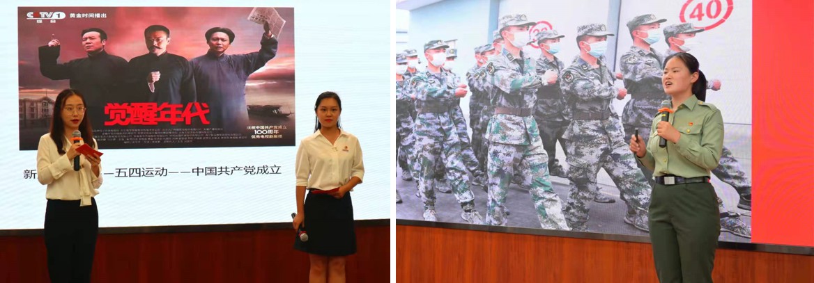 来自医学院的段颖从一串神秘数字“15665,611612”引入,把大家带回了1921年那个激情燃烧的岁月。“这串数字,其实是歌曲《没有共产党,就没有新中国》第一句旋律的简谱。”段颖以时间为轴,带领大家重温了中国共产党从1921年建党以来带领中国人民从站起来、富起来到强起来的“制胜密码”。“疫情防控斗争实践再次证明,中国共产党领导和我国社会主义制度具有强大生命力和显著优越性。”