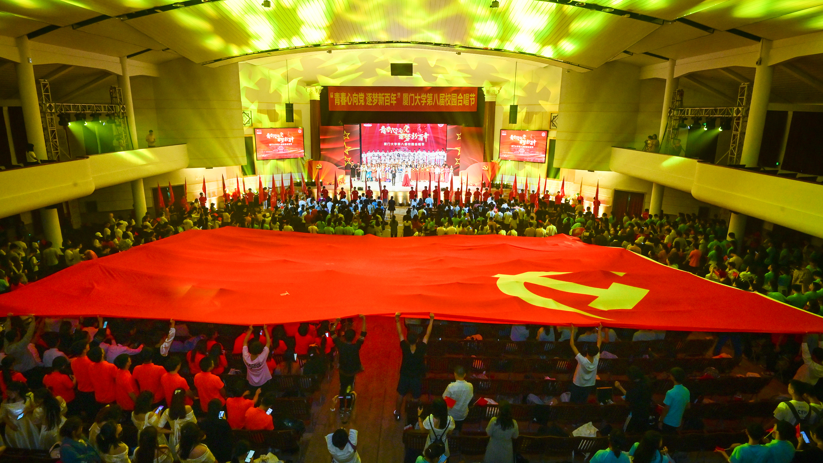 为庆祝中国共产党成立一百周年、厦门大学建校一百周年,6月5日晚,“青春心向党·逐梦新百年”厦门大学第八届校园合唱节汇演在建南大会堂隆重举行。校党委副书记、纪委书记全海,校党委副书记徐进功,校关工委主任陈力文出席。