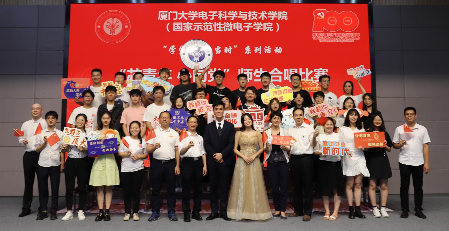 6月6日晚上,电子科学与技术学院“芯青年 心向党”主题微党课展演暨师生合唱比赛在翔安校区举行。展演阶段,共有26个班级参加,经过激烈的角逐,最终12支合唱队脱颖而出。在汇演阶段,他们登台歌唱,唱出心中的青年梦、中国梦,在施展才华的合作中传递正能量,汇聚青春力量。学院党委书记吴国瑛、院长陈忠出席活动。