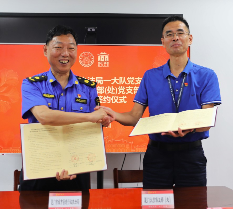 此次支部共建活动,是保卫部(处)党支部与市执法支队一大队党支部积极探索城市管理和校区治理新模式的一次尝试,双方联手将“红色资源保护和利用”这根主线,与思明校区行政执法业务相结合,形成执法合力,努力打造优势互补、资源共享、双向服务、互助联建的良好党建格局。