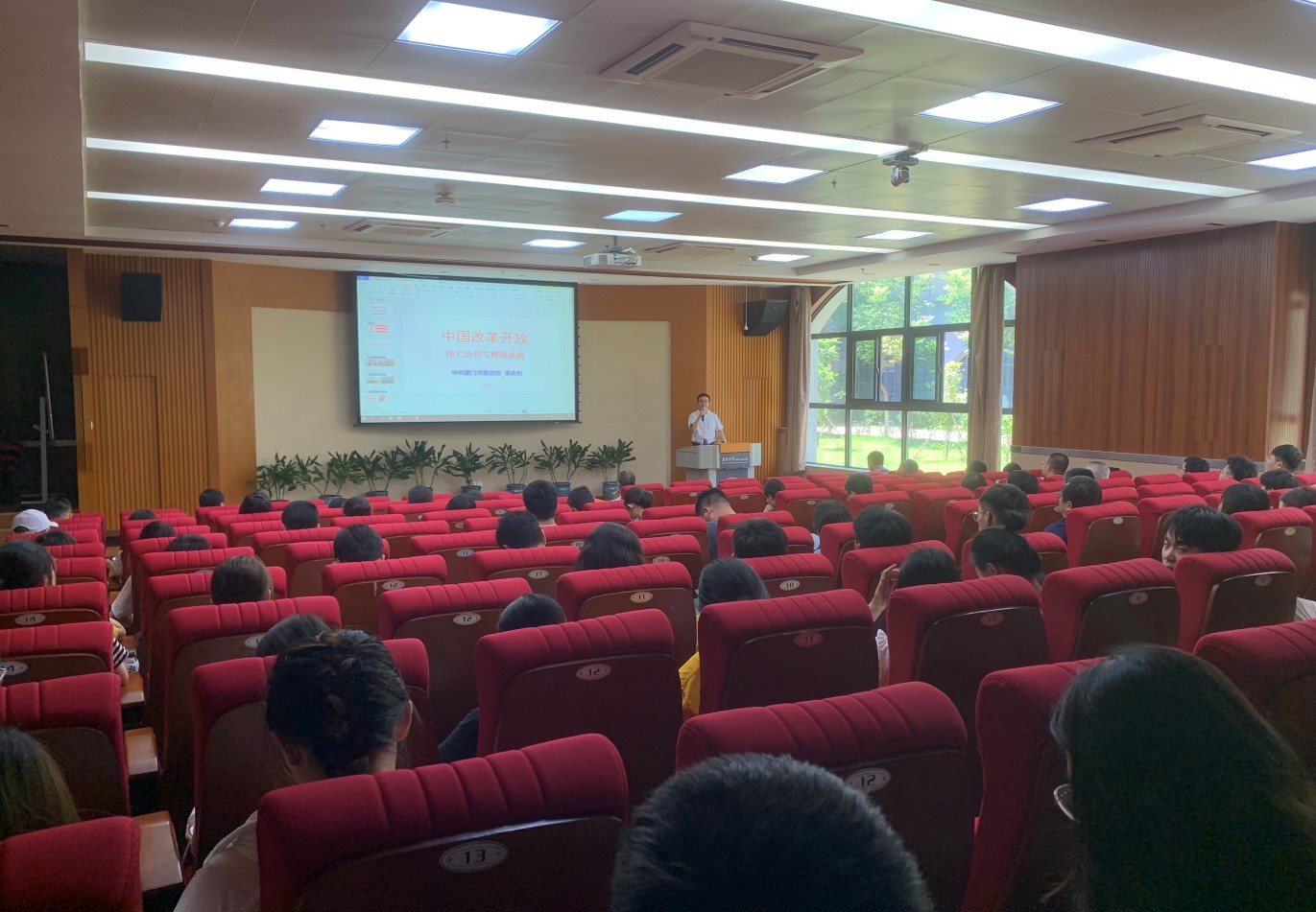 讲座题目是“中国改革开放的伟大历程与辉煌成就”,主讲人是厦门市委党校李庆利副教授。