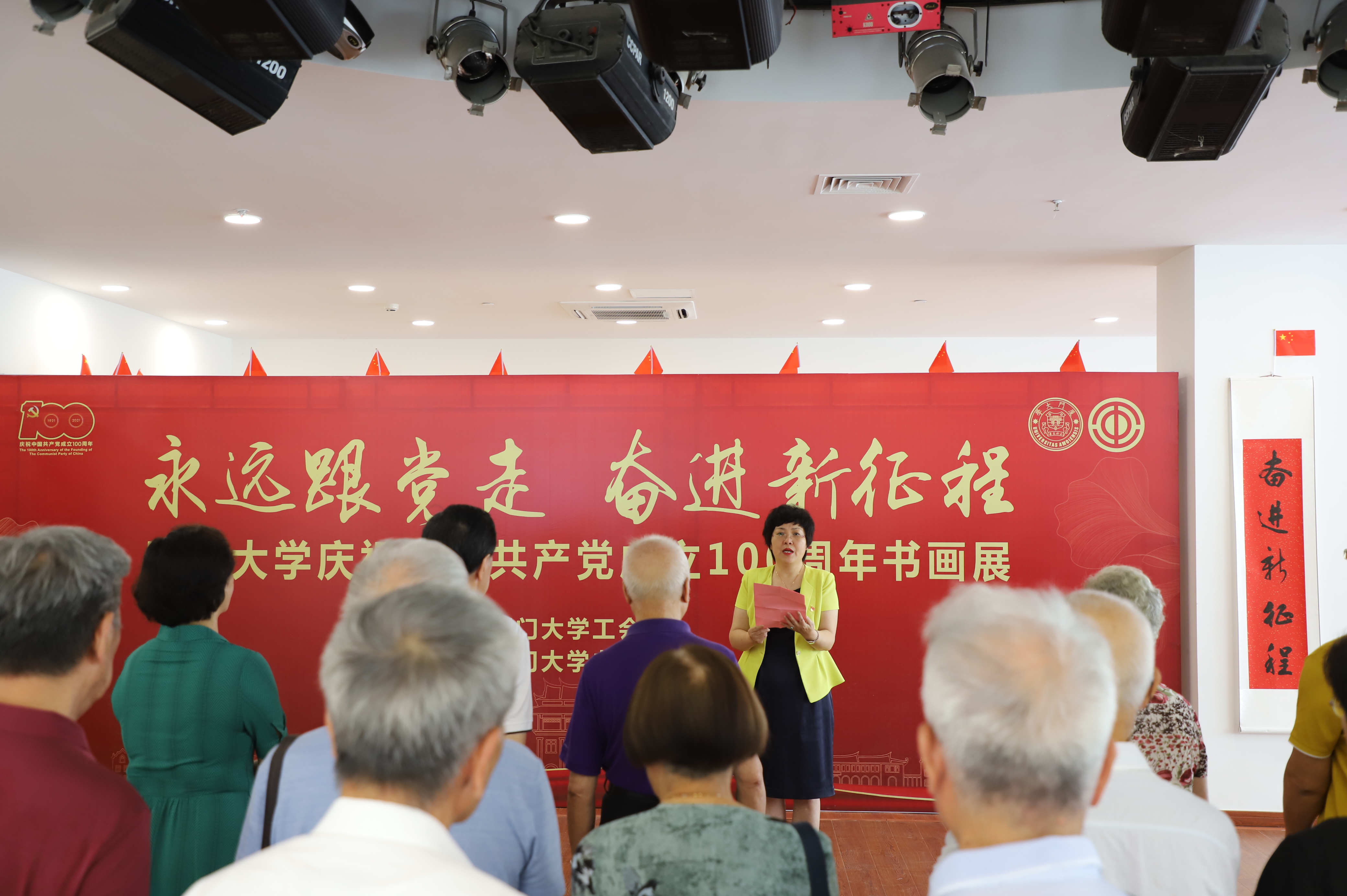 为庆祝中国共产党成立100周年,用书画艺术的方式讴歌中国共产党100年来的辉煌历史与成就,表达我校广大师生爱党爱国爱校之情,6月28日上午,由校工会举办、书画研究会承办的“永远跟党走 奋进新征程”厦门大学庆祝中国共产党成立100周年书画展在教职工活动中心(建文楼)一楼开幕。副校长邓朝晖致辞。校工会常务副主席叶鹏飞主持。