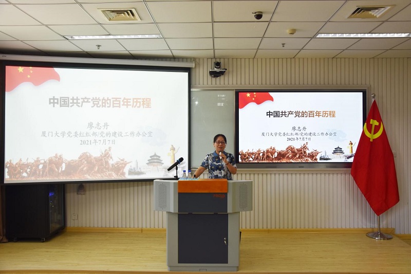 7月7日下午,能源学院党委邀请校党委党建办主任、组织部副部长、教师工作部副部长、学校党史学习教育宣讲团成员廖志丹副教授为学院全体教工、学生党员和入党积极分子讲授题为《中国共产党的百年历程》的党史学习教育专题党课。报告会由学院党委书记张军奎主持。