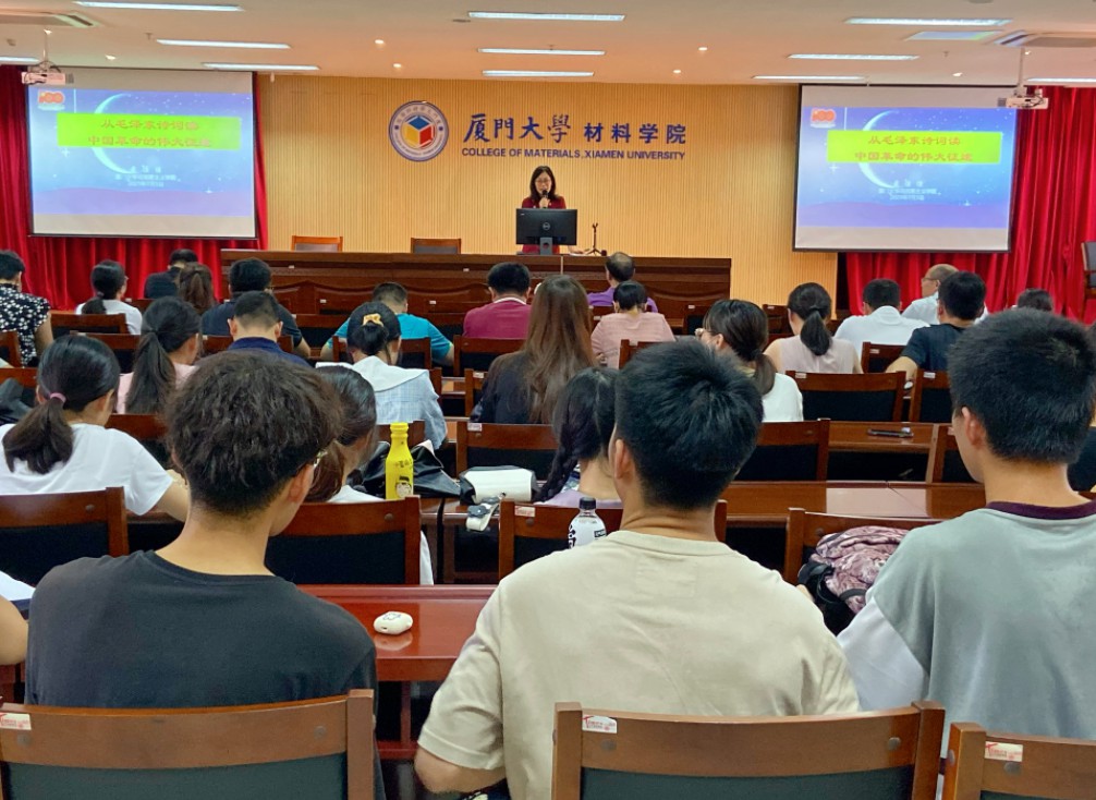 为深入开展党史学习教育,为感悟伟人初心,传承革命精神,7月5日下午,马克思主义学院黄佳佳副教授应邀作题为《从毛泽东诗词读中国革命的伟大征途》的报告。材料学院党委书记刘立荣,党委副书记马兆海、黄兆君,副院长石巍等学院领导与全院师生党员共同参加讲座。