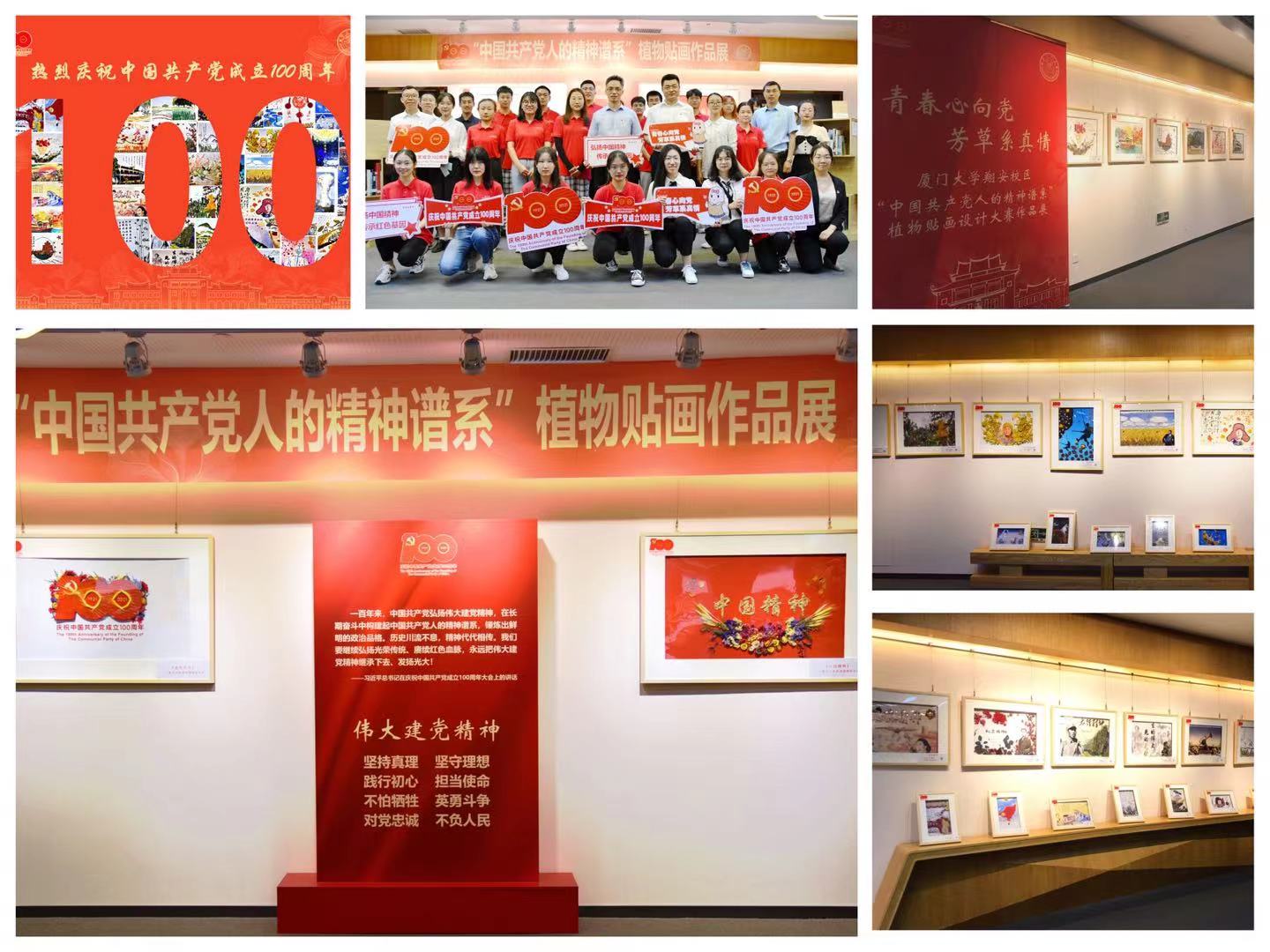 为庆祝中国共产党成立100周年,厦门大学药学院、翔安校区学生办、学生公寓办、翔安校区团工委联合举办了“厦门大学翔安校区‘中国共产党人的精神谱系’植物贴画设计大赛”。7月9日上午,在翔安校区德旺图书馆三楼展厅,厦门大学副校长周大旺和师生代表一同欣赏了集中展出的40余件优秀作品。作品以“开天辟地”、“改天换地”、“翻天覆地”、“惊天动地”四部分进行布局,采用植物贴画制作与绘画、书法、刺绣、剪纸等相结合的形式呈现,教育引导广大师生争做伟大建党精神的坚定捍卫者、忠实传承者和自觉践行者。