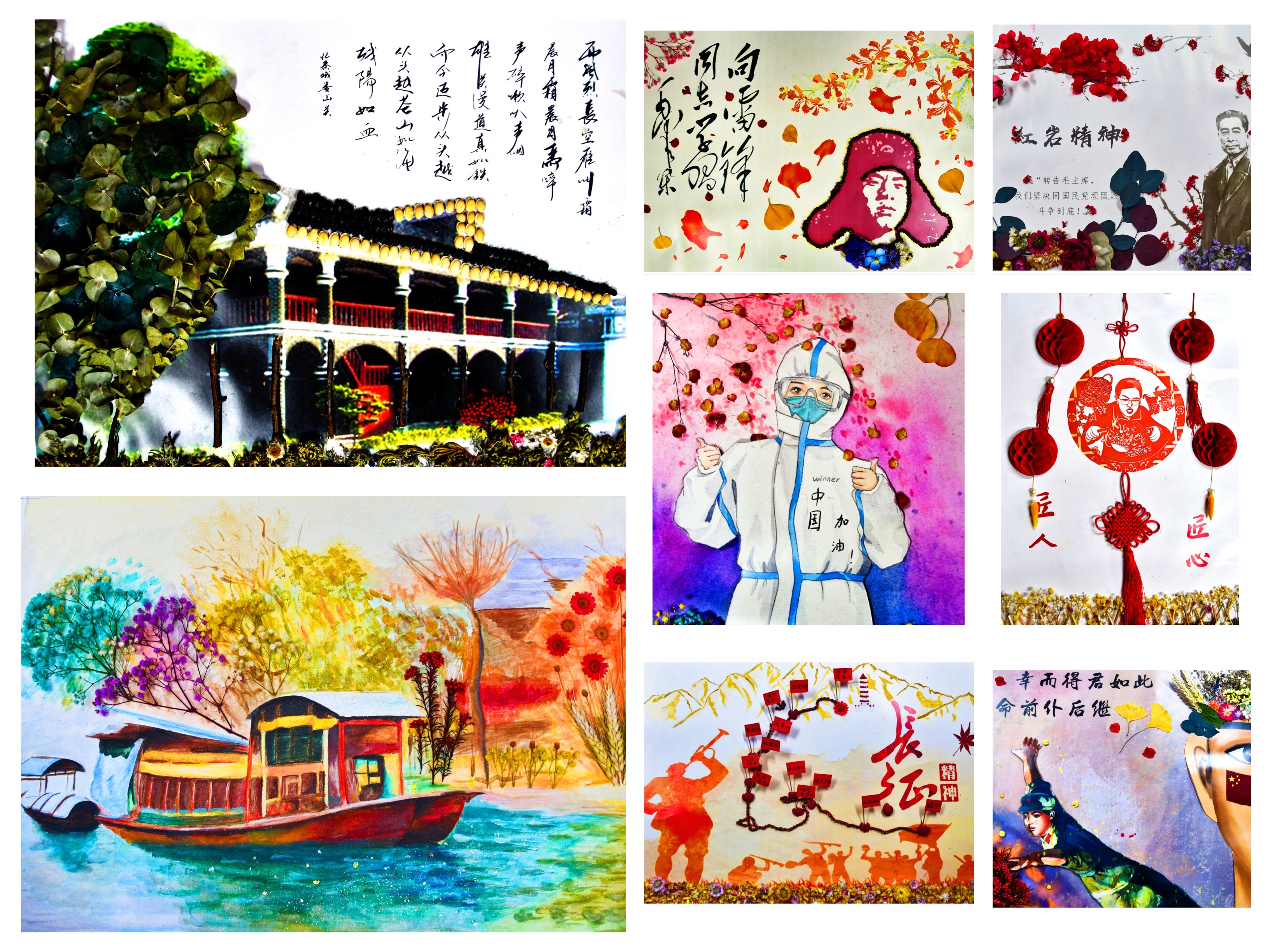 学生们通过集中学习、自学、小组讨论等形式,不断加强党史学习,为植物贴画创作给予了最充足的思想养分。从作品构思到勾勒底稿再到精雕细琢不断完善,历时两个多月的创作历程,传达的是对党的无限真情。