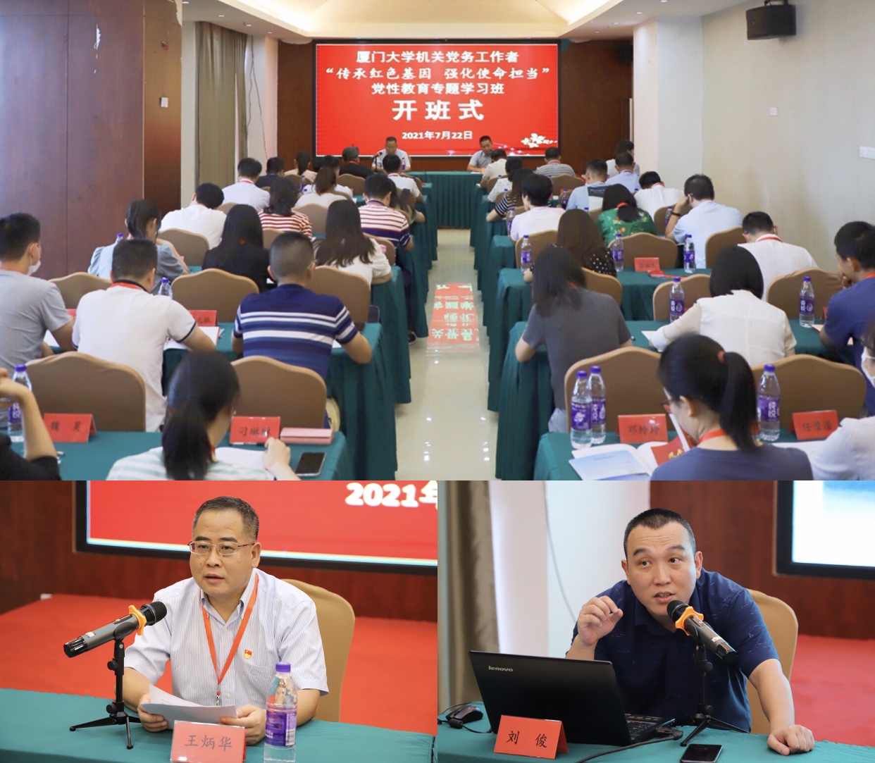 学习班在三明宁化进行现场开班,机关党委书记王炳华、机关党委委员梁卫中、离退休部副部长周一钦、实验处副处长张昌胜出席开班仪式。王炳华作开班动员,他指出,本次学习班是党史学习教育实践教学的重要环节,旨在切实提升机关党务工作者做好新时代机关党建工作的水平,引领学员在红色实践中深入学习领会习近平总书记在庆祝中国共产党成立100周年大会上的重要讲话精神以及在福建考察调研时的重要讲话精神,锤炼党性修养,强化一流意识、精准思维和认真态度。他提出三点意见与学员共勉,一要学优良传统,筑理想信念,磨砺意志力;二要历艰险磨难,振精神斗志,锻炼坚忍力;三要戒空谈之风,稳思想之舵,提高自制力。希望各位学员严守培训纪律,全心投入学习讨论之中,学以致用,做到有所思、有所悟、有所得,从党的非凡历程中感悟真理和实践力量,为学校新百年建设积极担当作为、奋发进取。