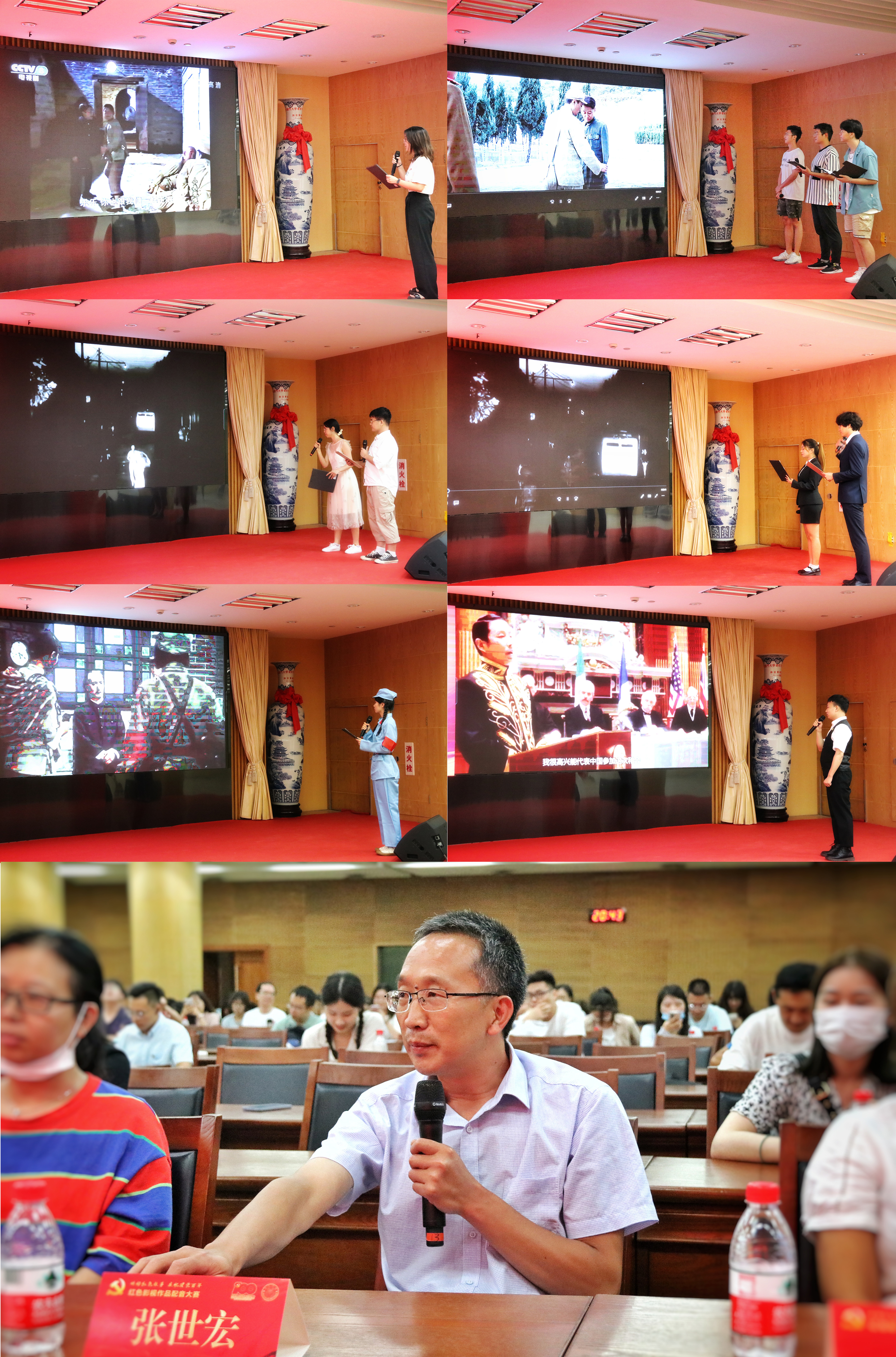 张世宏老师对各位选手的表现进行了总体点评,他对选手们对影视情境的体验,人物情感的揣摩,声音的表现和主题思想的把握表示了肯定,对同学们的天赋和努力感到十分的欣慰。同时,张老师认为,在建党百年之际,通过配音大赛这样生动活泼的形式来致敬红色经典、表达爱国热情和家国情怀是一个十分成功有效的方式,相信大家通过参加和欣赏这场比赛,对党和国家的精神会有更深一步的理解和认同。
