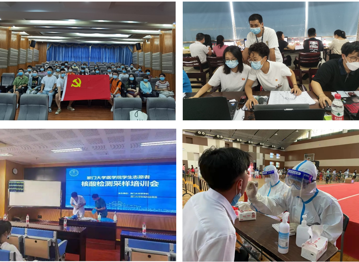 一是师生党员冲锋在前。在疫情防控工作前沿,师生党员站稳人民立场,当好群众信赖的“主心骨”。化学化工学院党委书记、党员院长急召学院教工党员组成核酸检测志愿服务队,全国“双带头人”教师党支部书记工作室负责人、福建省“优秀共产党员”荣誉获得者等教师党员也发挥表率作用,积极参与其中;医学院近400名党员、入党积极分子、入党申请人踊跃报名志愿者,其中部分人经培训后上岗,支援厦门市核酸检测;公共卫生学院在3小时内招募集结102名志愿者紧急驰援厦门市疾病预防控制中心的流调工作,他们当中党员比例超六成。二是“白衣”党员逆行出征。面对病毒威胁的主战场,医护人员白衣执甲,勇担疫情防控“排头兵”。去年在援鄂期间火线入党的急诊医学科护士张楠,此次带队负责同安区某采样点,每日连续奋战15个小时,每天带领小队采样近两万人次,编导从支援武汉到支援莲前、前埔街道,再到支援同安区,不变的是心中“召必战,战必胜”的坚定信念;同是援鄂护士的党员陈秋梅及熊慧芳二人通宵达旦支援同安区汀溪镇采样点,她们和同事现场没地方休息,就直接用会议室的椅子当床铺……三是群团力量积极参与。共筑校园疫情防控安全屏障,“90后”、“00后”也是其中的“生力军”。厦门大学学生会、研究生会发文倡议,呼吁每一位厦大学子凝聚爱与力量,共同筑造校园疫情防控的安全屏障;以2021级临床专业本科新生黄嘉欣为代表的一众厦园新生,刚入校就临危受命、迎难而上,他们主动投身疫情防控志愿服务,并第一时间向党组织递交了入党申请书,用行动践行着“请党放心,抗疫有我”的青春担当。