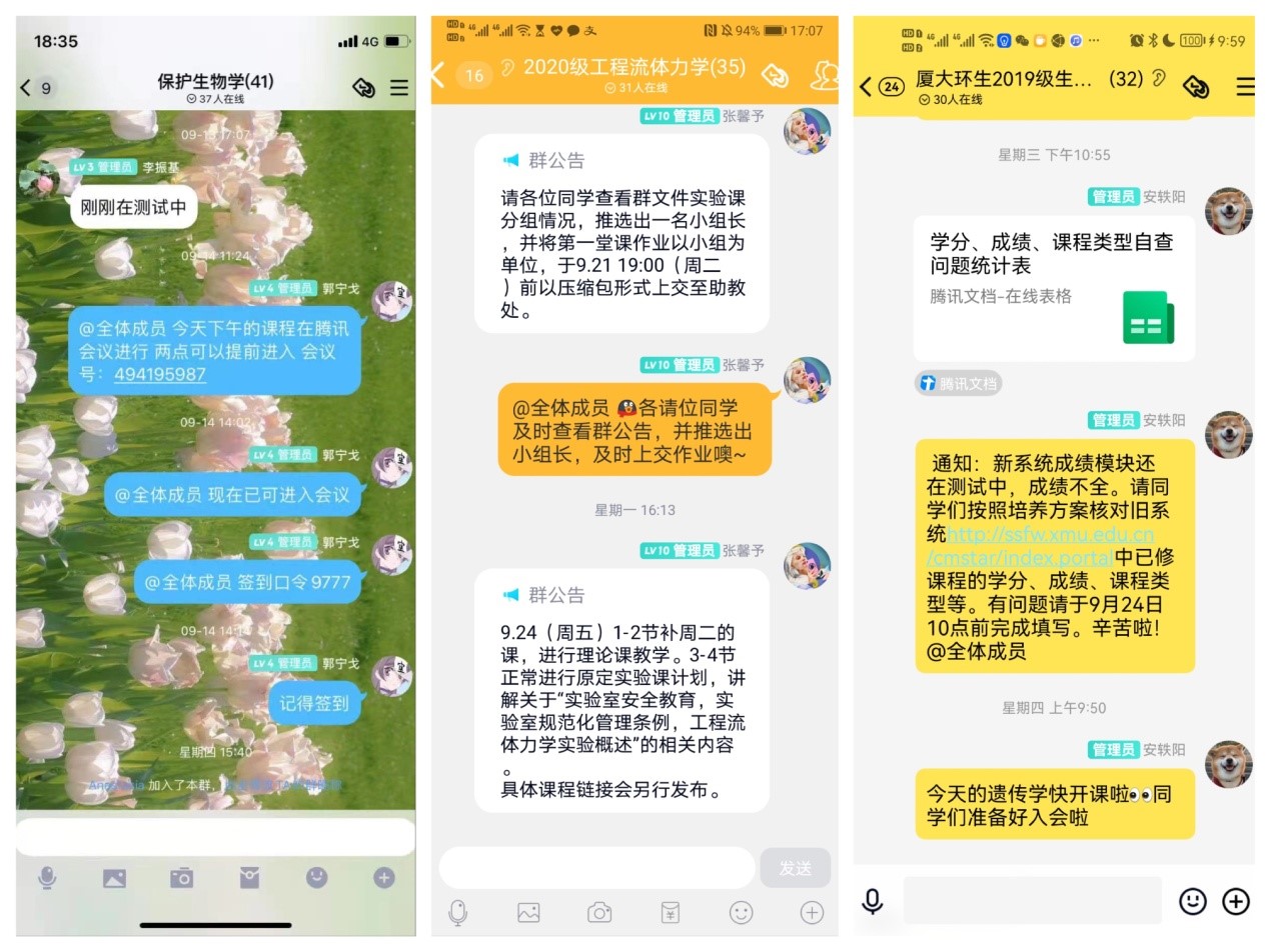 这些同学组成若干个学习督促小组,他们提醒同学按时上课签到、协助课程群管理员收集同学们对于线上教学的问题与意见建议,并及时与任课老师交流联系。截至目前,共计90余名党员、团员参与到此项工作中,为线上教学顺利、高效的开展贡献力量。