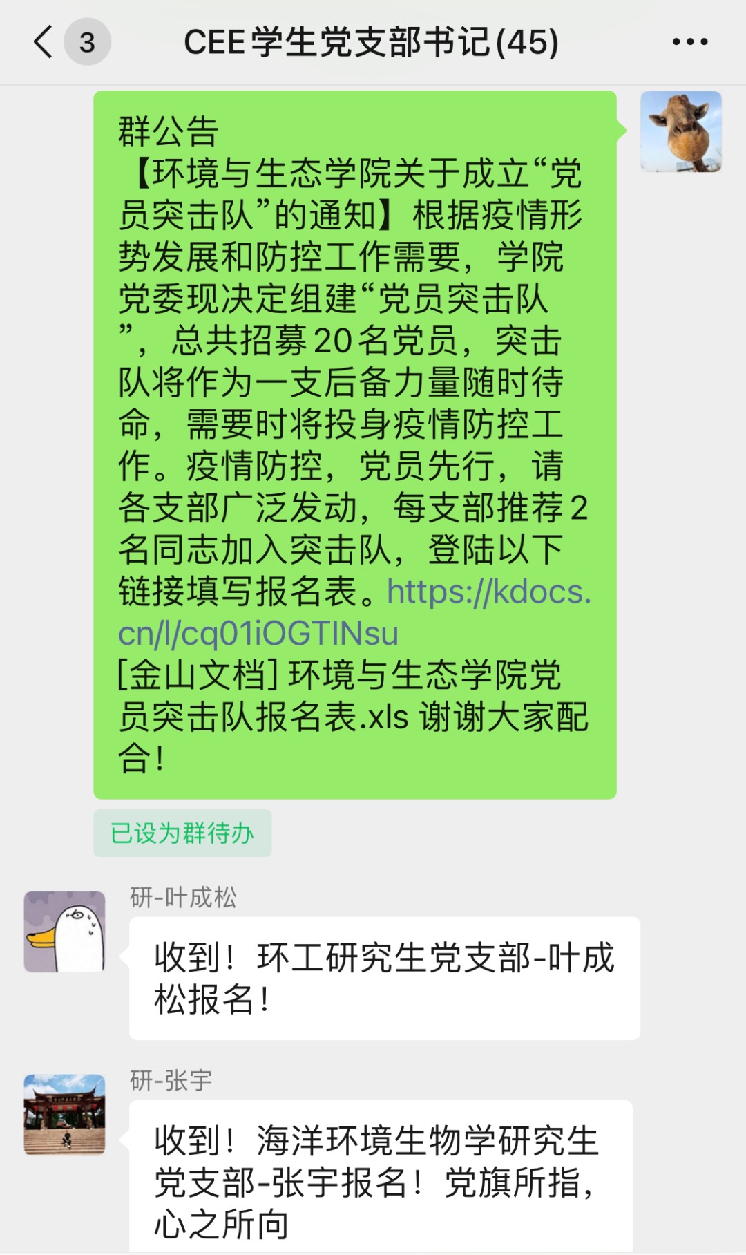 自开展线上教学以来,学院各线上教学QQ群出现了一些时常活跃在第一线负责维护线上教学秩序的“小助手”,这是由班干部、支部书记、支委、党员、入党积极分子、提交入党志愿书的同学共同组成的“线上教学先锋岗”。