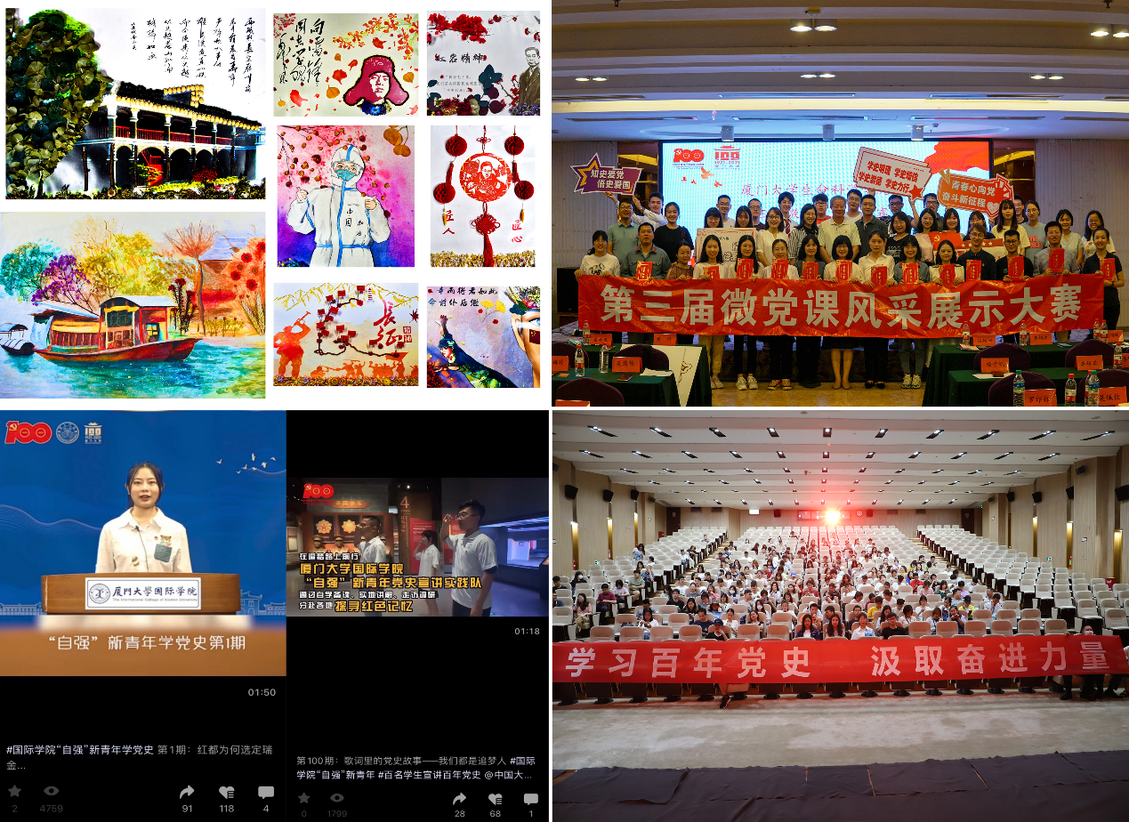 国际学院借力新媒体新技术,制作播出接地气、学生爱听爱看的微视频。推出“‘自强’新青年”学党史系列专题节目,制作100期精品党史微视频主题作品,以青年的视角重温党的百年峥嵘岁月,用青年之声讲述党的百年光辉历程,浏览量达225255次。电子科学与技术学院开展“芯读四史”系列活动,以讲好“四史”故事为主线,囊括了“图、书、馆、音、影、漫、议”7个支线主题,利用文字、漫画、音频、视频等载体创作“四史”相关作品,直观立体呈现动人的“四史”故事。