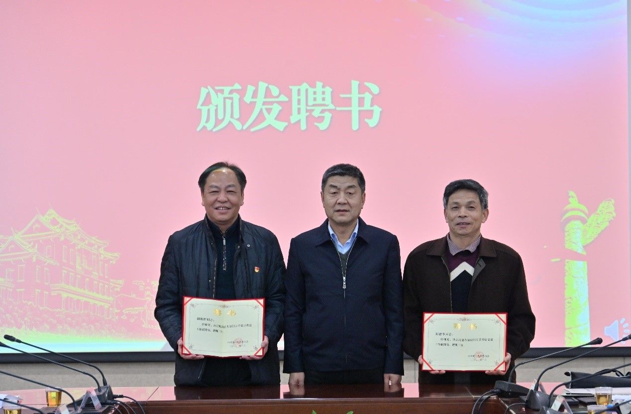 2021年10月,学校党委根据实际情况对学校基层党建工作联络方案作出相应调整。会上,全海为新聘任的联络员谢银辉、郑建华颁发聘书。
