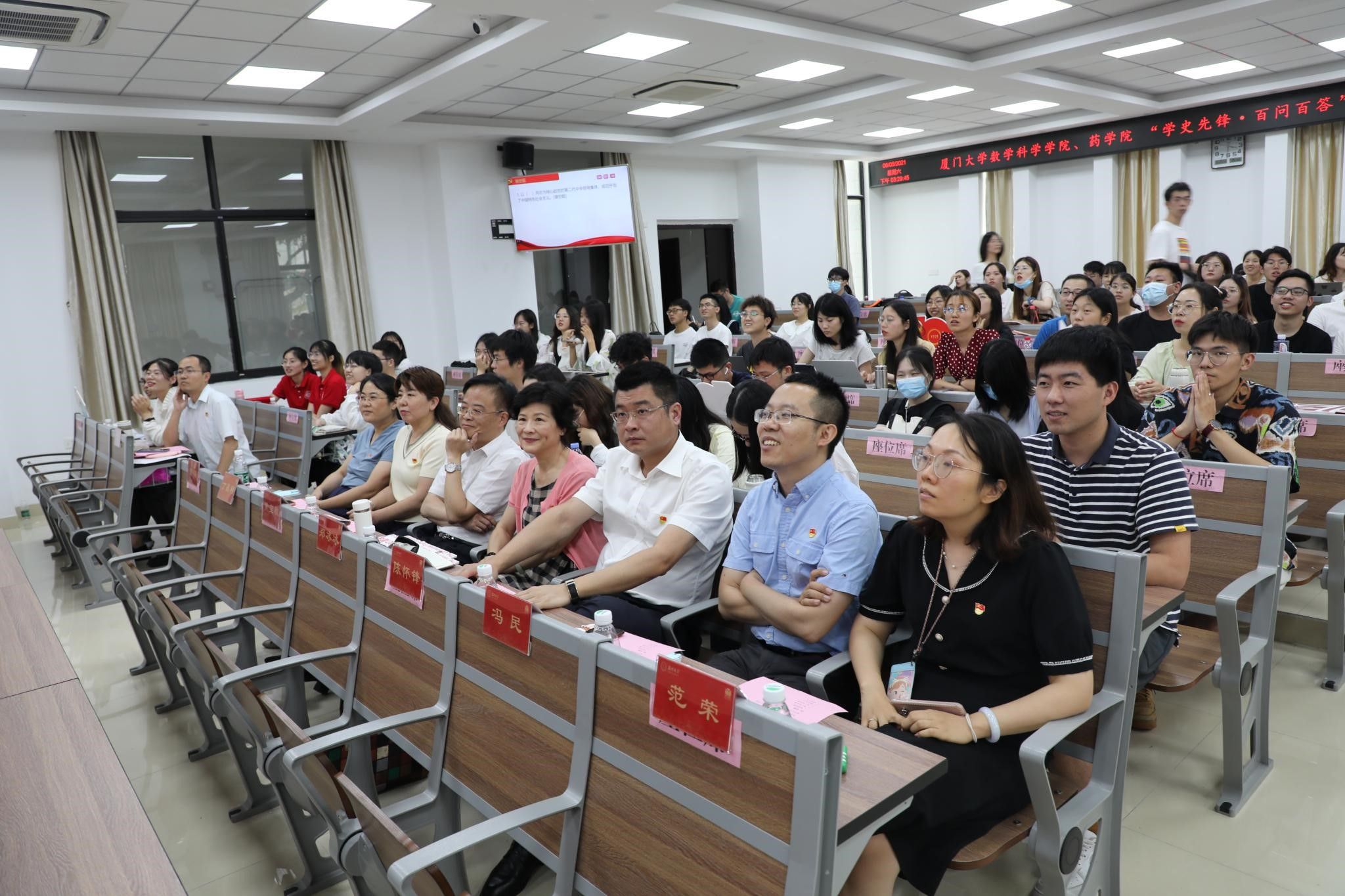 校工会以“共读红色经典·共建书香厦园”为主题,开展第五期“悦读书屋”活动,向41个部门工会赠送“四史”学习教育书籍,在第五批申请“悦读书屋”的6家基层部门工会举行赠书仪式,活动现场,校工会干部、校教职工合唱团分别带来经典诵读与红歌联唱,精心组织了惠民购书、共读金句、“四史”有奖竞答等互动环节,活动吸引了学校千余名师生的参与,在各基层部门工会中掀起读“四史”热潮。图书馆部门工会举办“知史爱党”主题读书报告会献礼党的百年华诞。出版社部门工会与管理学院部门工会联合开展“读四史,争做坚守教育情怀的大先生”青年教师学习交流沙龙等,引领全民阅读中好风尚,营造浓厚的共读文化氛围。
