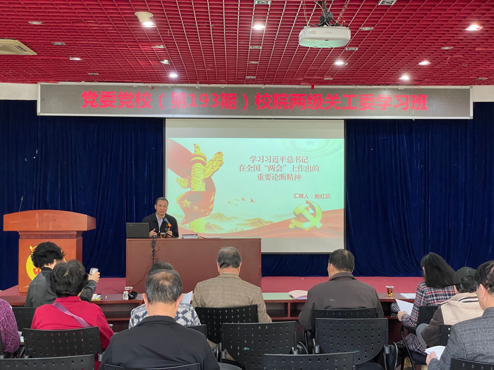 3月9日上午举行开班式。校关工委常务副主任赖虹凯作开班专题报告。
