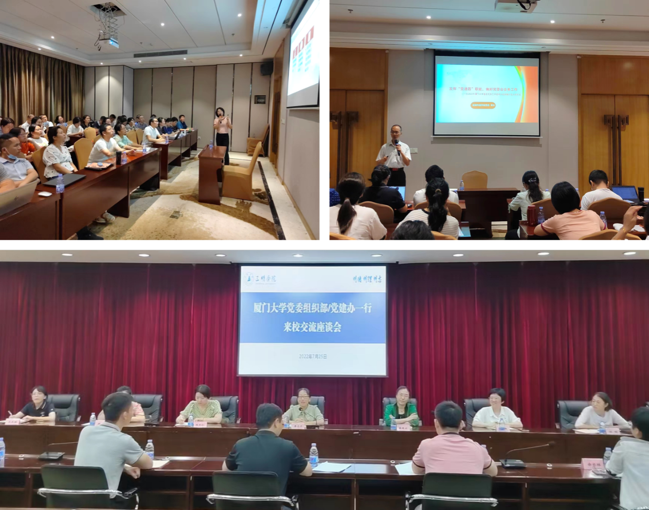结合学校党建工作调研座谈会相关内容,第七期党务秘书(组织员)沙龙聚焦“如何加强教工党支部政治把关作用”和“如何开好党委会会议、党政联席会议”两个主题,邀请谢媛、杨晓燕、陈静娴、王淑君、黄文、曹璐、刘美君等7位党务秘书(组织员),结合工作实际和典型案例,分享交流本单位在做好教工党支部对教工的考核评价、职级晋升以及师德师风等方面政治把关,以及落实党委会会议、党政联席会议议事规则的重点工作、特色做法和存在问题;与会学员集思广益,展开热烈讨论,为有效破解难题提出了一些建设性的意见建议。此外,受三明学院组织部邀请,学员代表前往三明学院开展座谈交流,互相借鉴吸收党建工作好思路、好做法、好经验,共同提升基层党建质量。