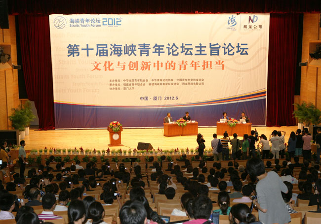 6月16日下午,第十届海峡青年论坛主旨论坛在我校科艺中心隆重举行。央视著名主持人白岩松,香港凤凰卫视资讯台副台长吴小莉,台湾前“青辅会主委”、空中大学教授李允杰,神州数码董事会主席郭为分别在论坛上发言,并与观众和网友展开热烈互动。我校党委书记杨振斌参加论坛并会见了中华全国青年联合会主席王晓和几位发言者。