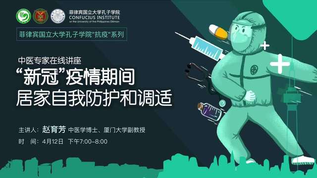 在菲律宾,我校承办的菲律宾大学孔子学院与中央广播电视总台《Wow China》节目合作,在菲律宾国家广播电台每周定期播出汉语广播教学节目《你好,普通话》。该节目信号覆盖菲律宾宿务、达沃等重点城市,并同步在菲律宾国家广播电台Facebook官方网页和中央广播电视总台菲律宾语官方页面进行视频直播。2020年3月以来,菲律宾受新冠肺炎疫情影响严重,学校停课,社区隔离,该汉语教学节目采用在线直播方式继续播出并备受关注,听众近万人。4月12日,菲律宾大学孔子学院还举办了线上中医讲座,邀请厦门大学中医系副教授赵育芳为孔院师生介绍居家防护、饮食与自我调适等知识。在讲座中,赵育芳除了讲授科学的洗手方式外,还针对菲律宾特殊的气候,为师生们提出科学防疫的具体建议,以疫情期间国内中医问诊的具体案例为引,叮嘱大家进行自我心理调适,避免紧张情绪,遵从“守正、防寒、祛湿、辟疫”原则,并编写生动活泼、朗朗上口的三字歌谣供孔院师生学习。