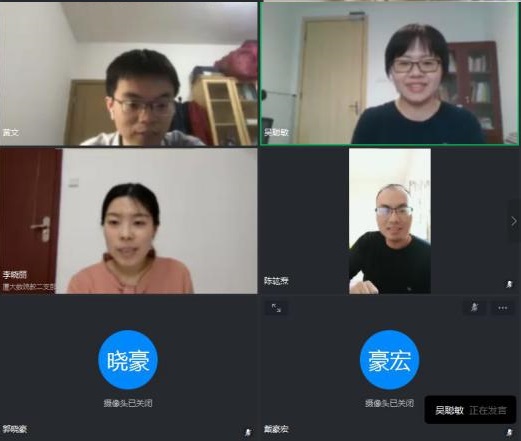 4月10日下午,数学科学学院教师第二党支部、本科生党支部、博士应用与计算党支部、硕士计算数学党支部在钉钉平台上联合开展以“同舟共济抗击新冠疫情,培育提升科研素养能力”为主题的“固定党日+”活动。该活动以学术沙龙的形式,由教师第二党支部书记吴聪敏老师主持,熊涛教授、黄文副教授和李晓丽博士与80多名同学进行了在线交流,学院党委书记黄宝秋、党委副书记陈国强、刘宁也一起连线参加。