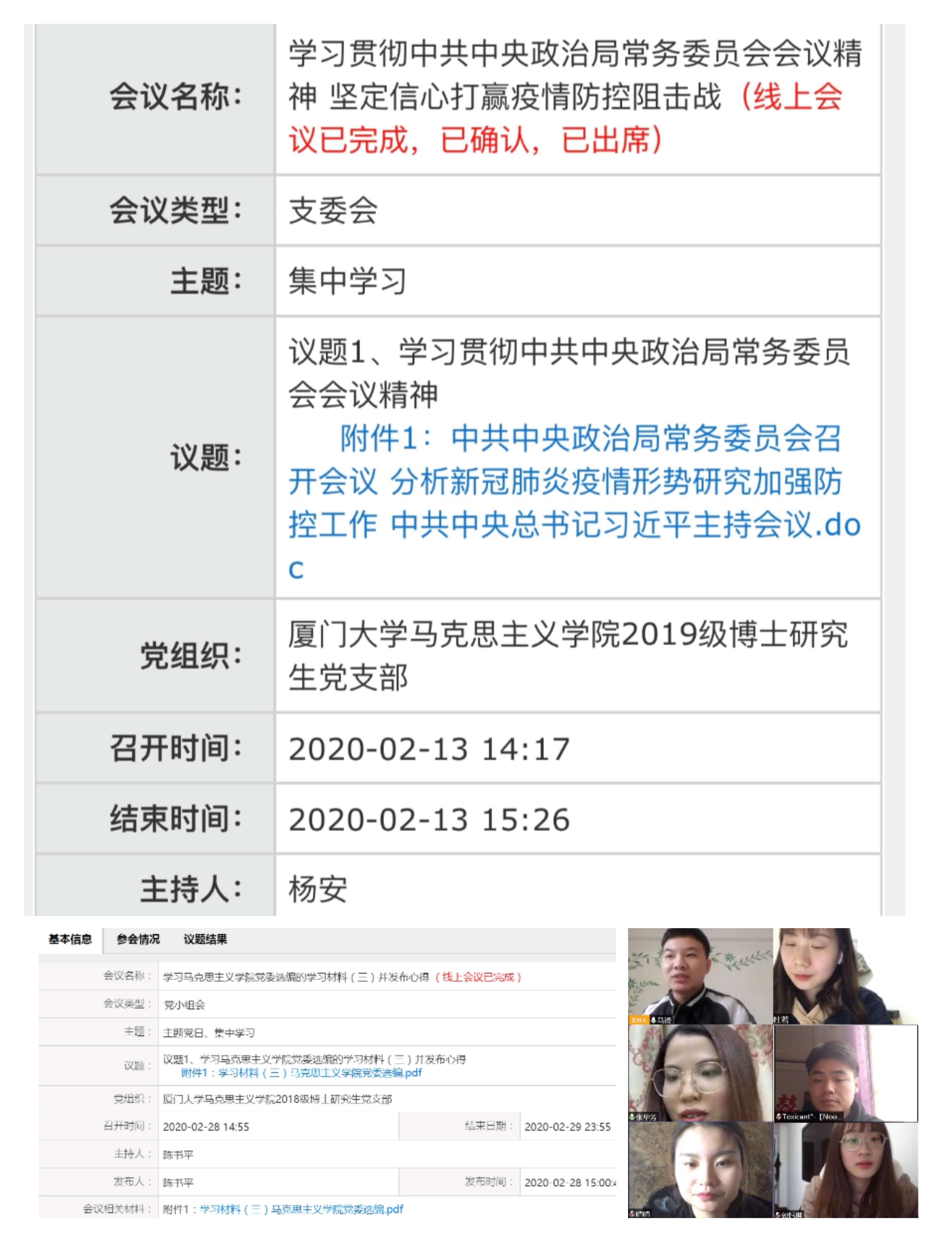自寒假以来,学院6个学生党支部结合中央及学校党委下发的文件精神共组织了13次线上理论集中学习分享活动。线上学习过程中,各位党员同志不仅增加了自己对有关方面的知识储备,加深了对我国疫情防控现状的了解,时刻关注着这场看不见硝烟的人民战“疫”,更在相互地交流分享中,体会到了我们社会主义制度的显著优越性。
