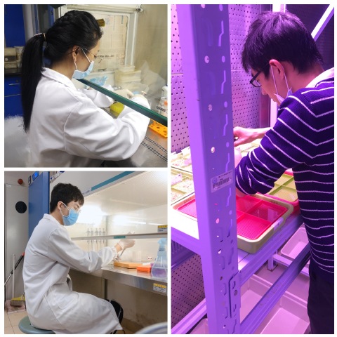 2018级博士韩久盼所开展的课题是关于UV-B调控植物生长发育机制的研究,他在实验室一待常常就是一天,除了处理自己的实验,还会定期去植物工厂给课题组的植物材料浇水,做一些基本的处理。今年读研二的林丽荣过上了“实验即生活”的日子,忙的时候经常因为实验而赶不上饭点,连续几周没有一天休息也成为了她生活的常态。由于实验室的其他同学还未能返校,她需要照看和喂养实验室所有的小鼠和按蚊,每隔三天就要上下推送鼠笼进行灭菌,“对体力也是一个考验”。