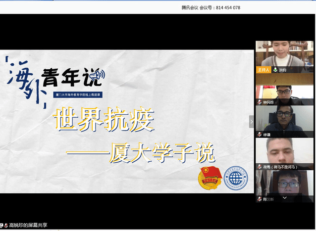 党旗所指,团旗所向。为凝聚青年团员齐心战疫的磅礴力量,鼓励团员用责任与担当筑牢防疫长城,动员“海外”学子讲好中国故事,传播中国经验,厦门大学海外教育学院研究生2017级团支部在这样一个特殊时期举行了一场以“世界抗疫——厦大学子说”为主题的云团课。