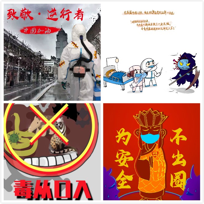 作品视角多样、题材丰富,有的作品致敬那些奋战在抗“疫”一线的医护人员、科研人员等众多榜样;有的作品用形象的“病从口入”宣传海报警示大家“保护野生动物,拒绝野味”;还有的作品利用漫画形式传播正确的防疫方式,呼吁大家“为安全,不出圈”,做好隔离,勤洗手,勤消毒,拒绝聚众……多样的作品传递着同一个声音和梦想就是“武汉加油!中国加油!”