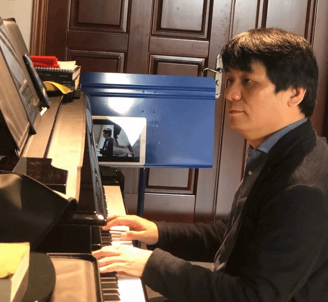 由于艺术教学的学科特点,艺术学院一对一小课数量多,是音乐、美术等学科教学的主力。该类课程需要传送尽可能真实的声音及清晰的图像,对于网络、平台的要求高,是我院此次开展网络课程的一大难点,许多教师对此也作出了大量的努力。陈舒华副院长为此自己提前以自己一线教师的专业眼光和要求,试用多款App平台,努力寻找最合适,最高效的平台推荐给师生。陈老师自己上课时则把家里的终端尽量用上,让学生能多场景,多角度地看到老师的示范和讲解,尽量让学生感觉像回到传统课堂一般。陈舒华教授的钢琴专业课是艺术学院众多一对一小课的缩影,每一位任课老师都倾尽所能以求达到最好的课堂效果。