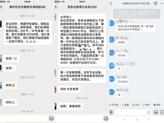 这一特殊时期,经过多方的努力,研究院线上授课有序进行中。截至2月19日,已有5门课程顺利按时开课,师生进入网络平台顺畅,师生反映教学互动效果良好。相信“互联网+教育”模式这一新鲜血液的注入,将驱散疫情带来的阴霾,为研究院带来全新活力。