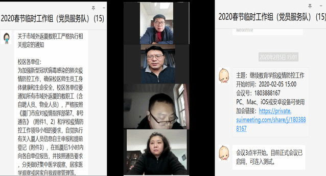 团结一心,共克时艰。在2020年初这个不同寻常的春节,新型冠状病毒感染的肺炎疫情突然袭来,牵动着每一个人的心。面对来势汹汹的疫情,在校党委的坚强领导下,继续教育学院党总支高度重视、全面贯彻落实上级党委和政府部门的决策部署,按照习近平总书记就疫情防控工作“坚定信心、同舟共济、科学防治、精准施策”的总要求,第一时间紧急动员,成立以党总支书记、院长为组长,副院长为副组长的学院防控工作领导小组,召集学院党员代表、骨干组建党员服务队,根据疫情形势的不断变化,多次召开视频会议安排部署各方力量,从人员信息、物资采购、环境卫生、宣传引导等多个方面深化细化防控措施,全力维护学院寒假值班、课件录制等各项工作平稳有序进行,为打赢抗疫阻击战提供坚强保障。