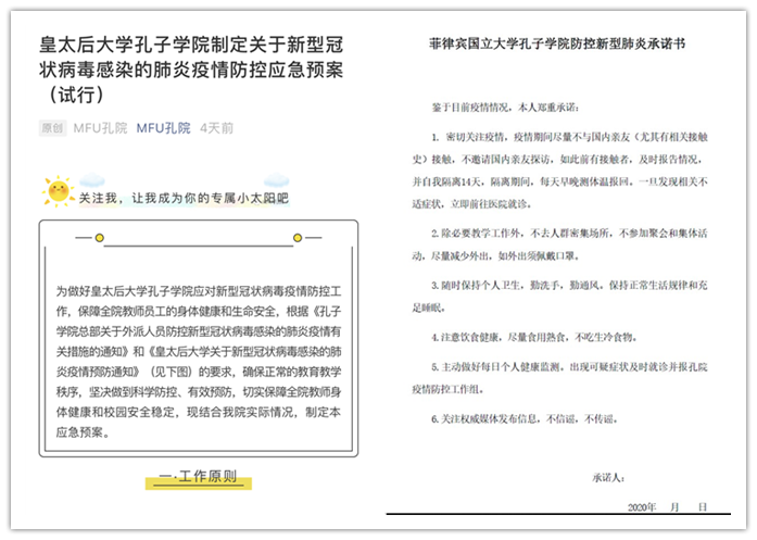 泰国皇太后大学孔子学院应急预案和菲律宾大学孔子学院承诺书