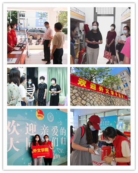 返校当日,参与志愿服务工作的师生中80%是党员。他们主动申请提前返校,积极冲锋在前,坚守在各站点和服务点,热情引导、悉心服务,欢迎每一位外文学子平安回家。