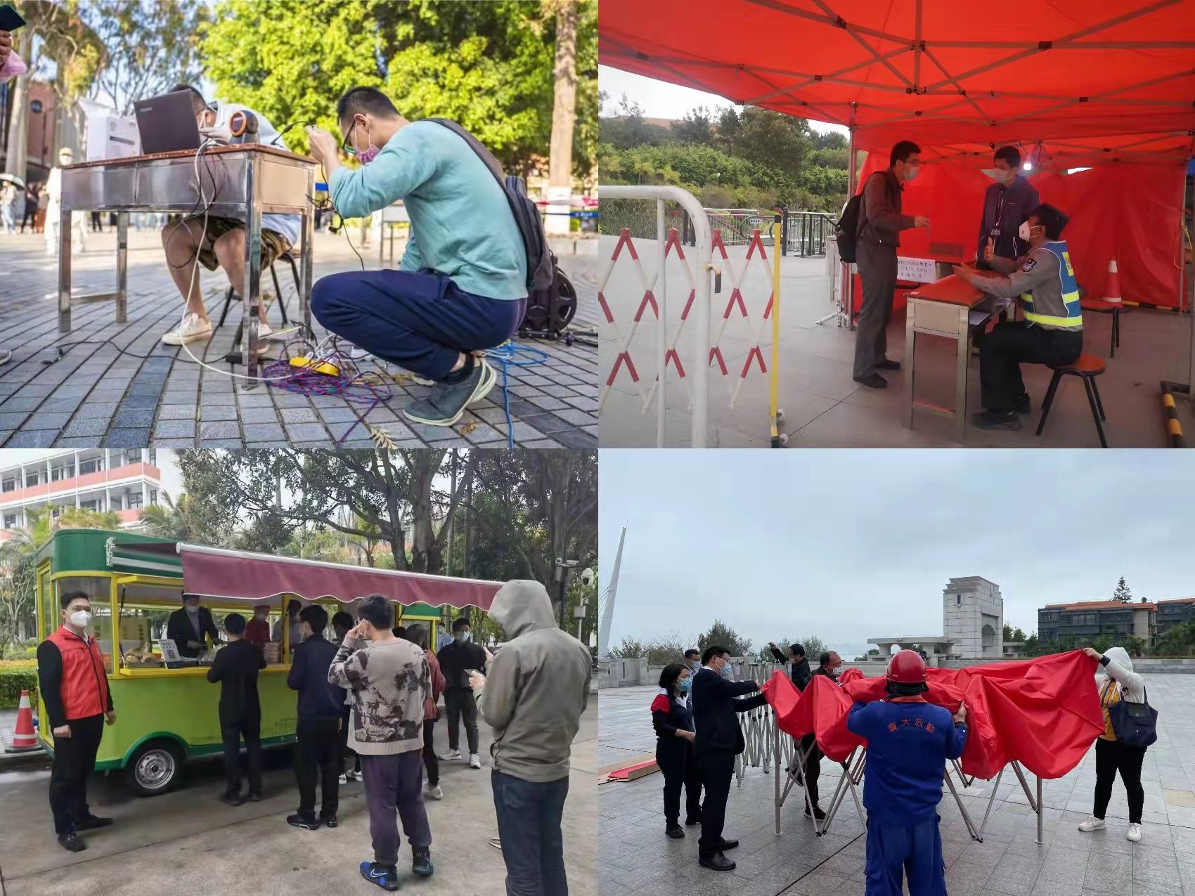 3月19日起,学校全面启动最高级别应急预案,学校办公室/防控办统筹协调学校有关责任单位,科学、全面开展应急处置工作,组织召开疫情防控各类会议17场,陪同校领导开展实地检查2次,协调开展全员核酸检测3场,推动各项防控举措再部署、再落实。保卫处第一时间发布校门管理通告,对入校人员、车辆进行分类管理,支部全体党员投身各校门开展驻点值守,落实人员、车辆入校管控工作,处理应急突发事件,迅速扎紧校园疫情防控网。学生处组建59个驻楼工作组迅速入住楼栋开展工作,自3月13日以来共开展11轮涉疫风险摸排工作,收集近2000条排查信息;成立楼栋工作专班,全力保障学生学习生活秩序。机关109名“一站式”学生社区兼职辅导员深入学生社区开展疫情防控工作,竭尽全力守护“无疫学生社区”。为进一步做好校园疫情防控工作,组织部/党建办火速组织起一支百人教职工应急志愿队,承担防疫物资发放、公共场所秩序维护、核酸检测等应急任务,校团委积极开展防疫储备青年志愿者招募工作,48小时不到的时间里就有7782名团员青年报名加入志愿者队伍,截至目前已有2800余人次青年志愿者科学有序地参与到学校各项志愿服务工作中。医管办在3天时间内牵头开展思明校区2场全员核酸检测,机关各部门全力配合,共同保障8万人次核酸检测有序进行:资产处在职教职工党支部为每个检测点安排1-2名工作人员负责资产服务保障协调,完成桌椅帐篷、防疫物资配送,供电、照明、插座安装等工作,并先后落实核酸检测电脑近100台次;信息与网络中心党支部做好核酸检测专用网络部署、电脑配置、刷卡机保障等工作;保卫处党支部提前设置检测通道和执勤点位,维护检测现场秩序。漳州校区管委会、翔安校区管委会全面做好校区疫情防控各项工作,强化属地联动,配合属地做好师生员工摸排,在校门管理、核酸检测、线上教学、抗疫宣传等方面抓细抓实,学生办、公寓办、团工委的学工干部18日起至今以校区为家,切实筑牢疫情防控坚强防线。