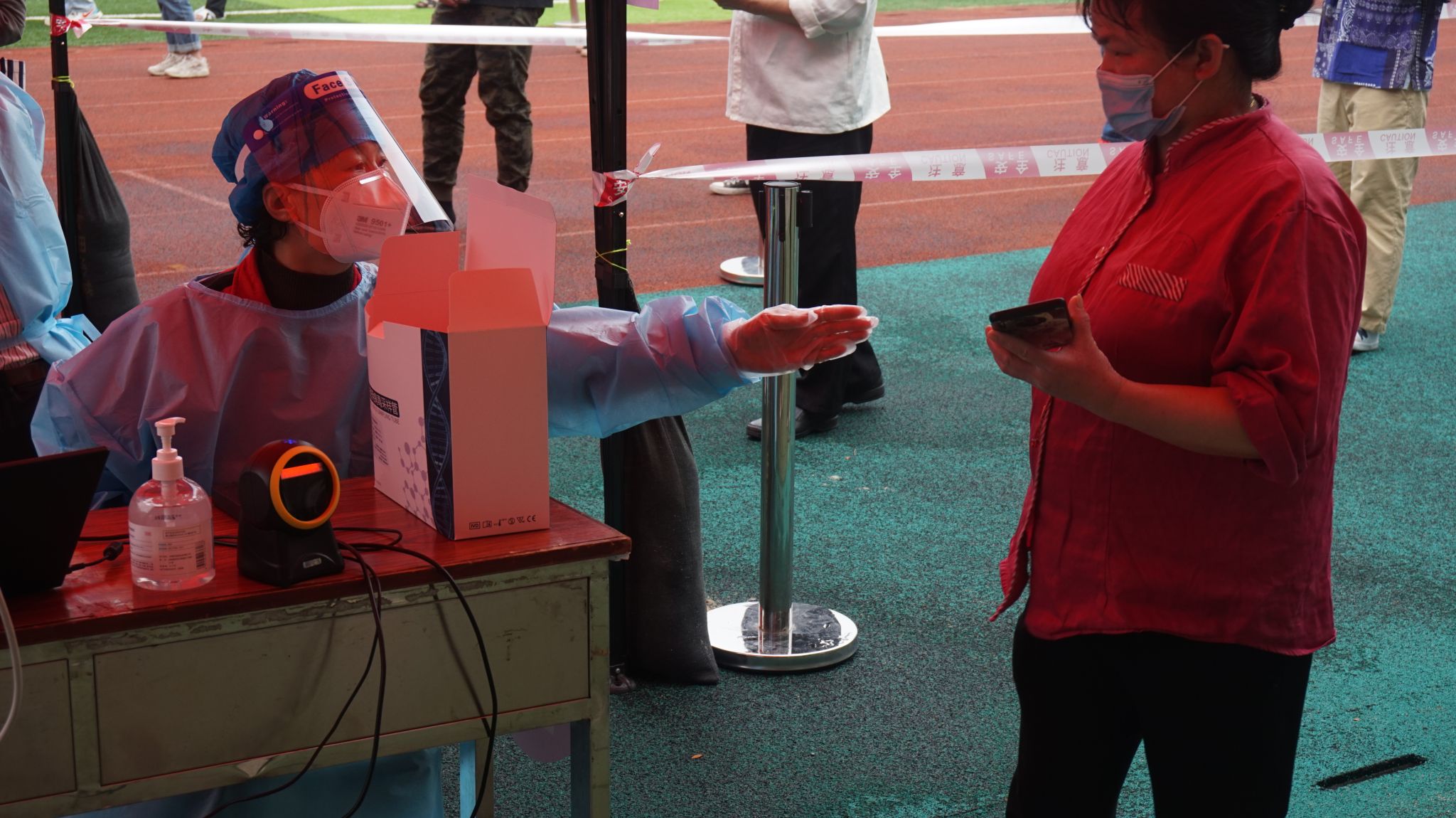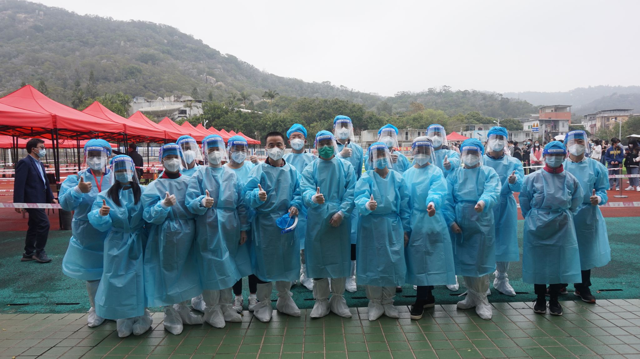 当日下午13时,全体志愿者到达海韵学生公寓核酸检测现场参加岗前培训,整齐穿戴防护服,并在现场工作人员指导下开展实操演练。14时核酸检测正式开始后,志愿者们迅速投入工作,在现场做好人员引导、信息录入,持续奋战至晚间,协助完成了当日海韵学生公寓8000多名师生员工的核酸检测任务。