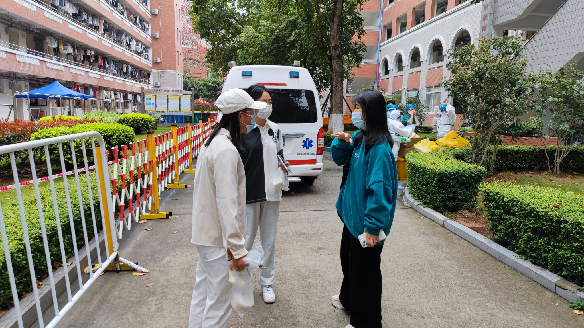 别怕,我们来了!自从学校加强校园管控之后,学院团委书记曾祥轩老师利用驻楼的机会,深入研究生宿舍,围绕封校期间的疫情防控、心理状况、寝室文化建设、学业规划、就餐需求、就业途径等话题,与学生们进行了温馨而亲切的交谈,曾老师不时记录着同学们的意见和诉求,并表示能解决的马上解决,不能立刻解决的将制订解决方案,或上报学校有关部门协助解决。防疫情况随时在变化,各种应急预案随时启动。从环境采样消杀、指导新冠抗原检测试剂使用等工作到细致做好学生安抚工作。