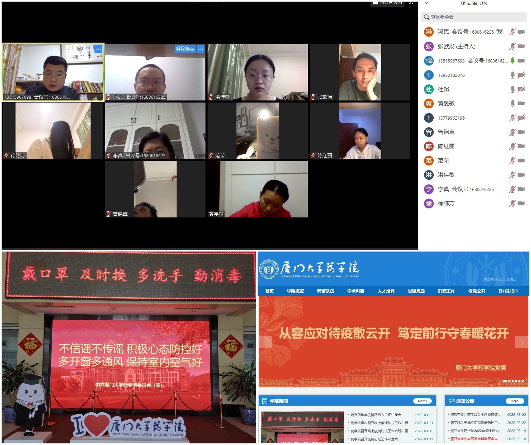 3月19日,学校发布《厦门大学校园疫情防控工作通告 〔2022〕第2号》,全面升级疫情防控措施,校园实施封闭式管理。当天下午,药学院线上召开疫情防控工作布置会,学院党委书记陈怀锋传达了学校疫情防控工作会议精神,并就现阶段学院疫情防控工作进行布置。他再次强调,疫情防控是头等大事,全体师生员工在思想上务必要高度重视,提高工作站位,严格按照学校学院有关要求,同心抗疫,从严从紧从实从细织密学院疫情防控网。