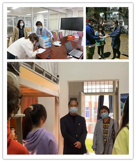 下沉学生社区,筑牢防疫网络。学院迅速启动学生社区防疫工作,学工组入驻学生宿舍,在学生社区设置抗疫临时党支部、抗疫党员先锋岗,党员师生轮流值班,强化网格化管理,全力以赴做好疫情期间教育管理与服务保障。学院领导老师走访宿舍园区,了解防疫情况,赠送防疫物资,鼓励同学积极配合学校学院的防疫政策。