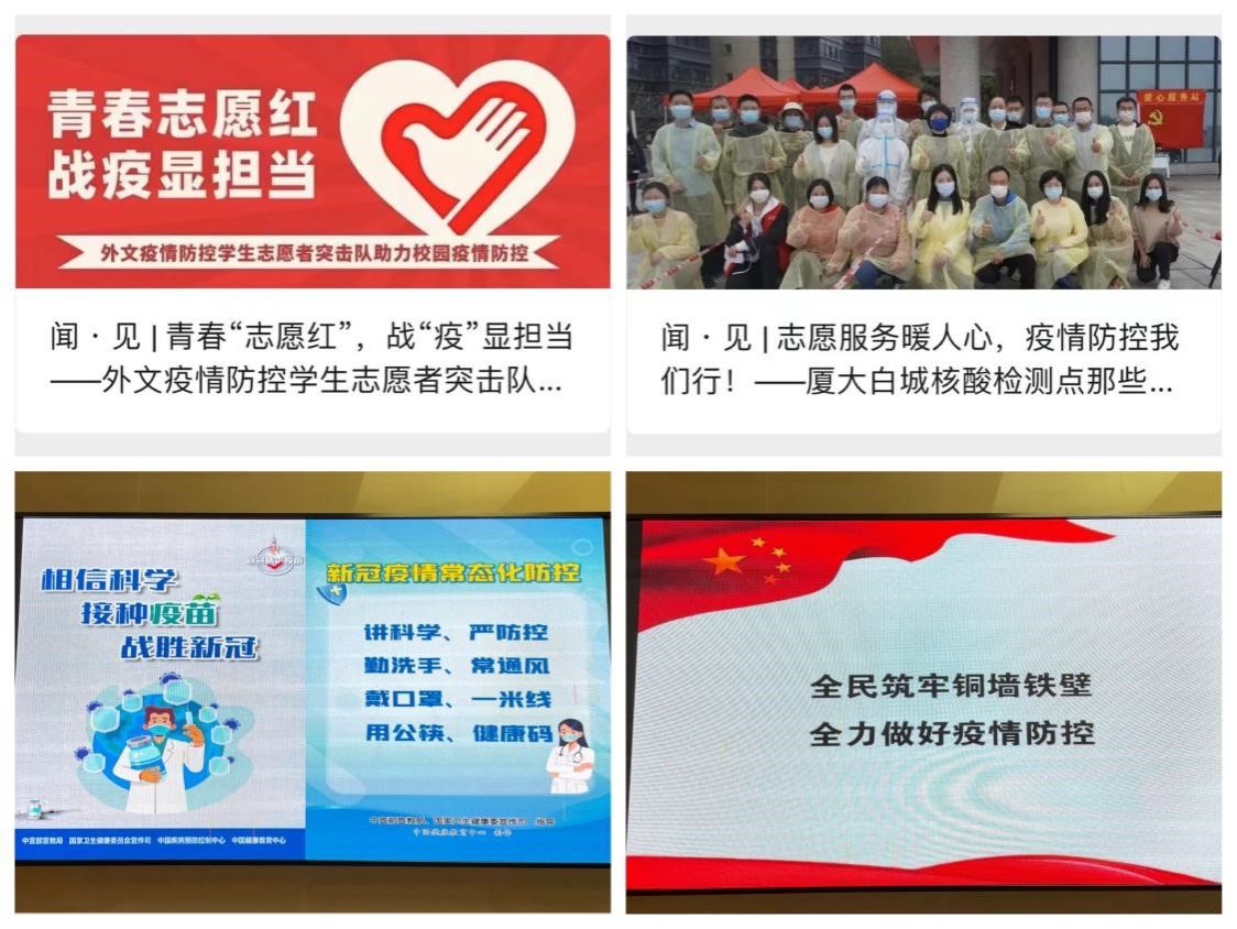 为落实学校有关工作部署,徐琪两次牵头负责白城核酸检测点组织协调工作,以上率下,举旗聚力,号召广大外文师生党员、团员争做抗疫先锋。5名党员报名思明校区应急志愿服务队,多次参与志愿服务;20位外文师生组成的核酸检测志愿服务队2小时内迅速集结。白城社区高龄居民较多,检测点特地设置“爱心服务站”,让老人家“歇歇脚”,采取点对点对接等办法帮助群众做好采样预登记,协调医务人员为行动不便的老人开辟临时的“流动检测台”,主动服务师生群众,获得群众好评。党员、团员闻令而动,冲锋在前,亮出身份,把使命扛在肩上,把群众放在心上,让党旗在疫情防控一线高高飘扬。