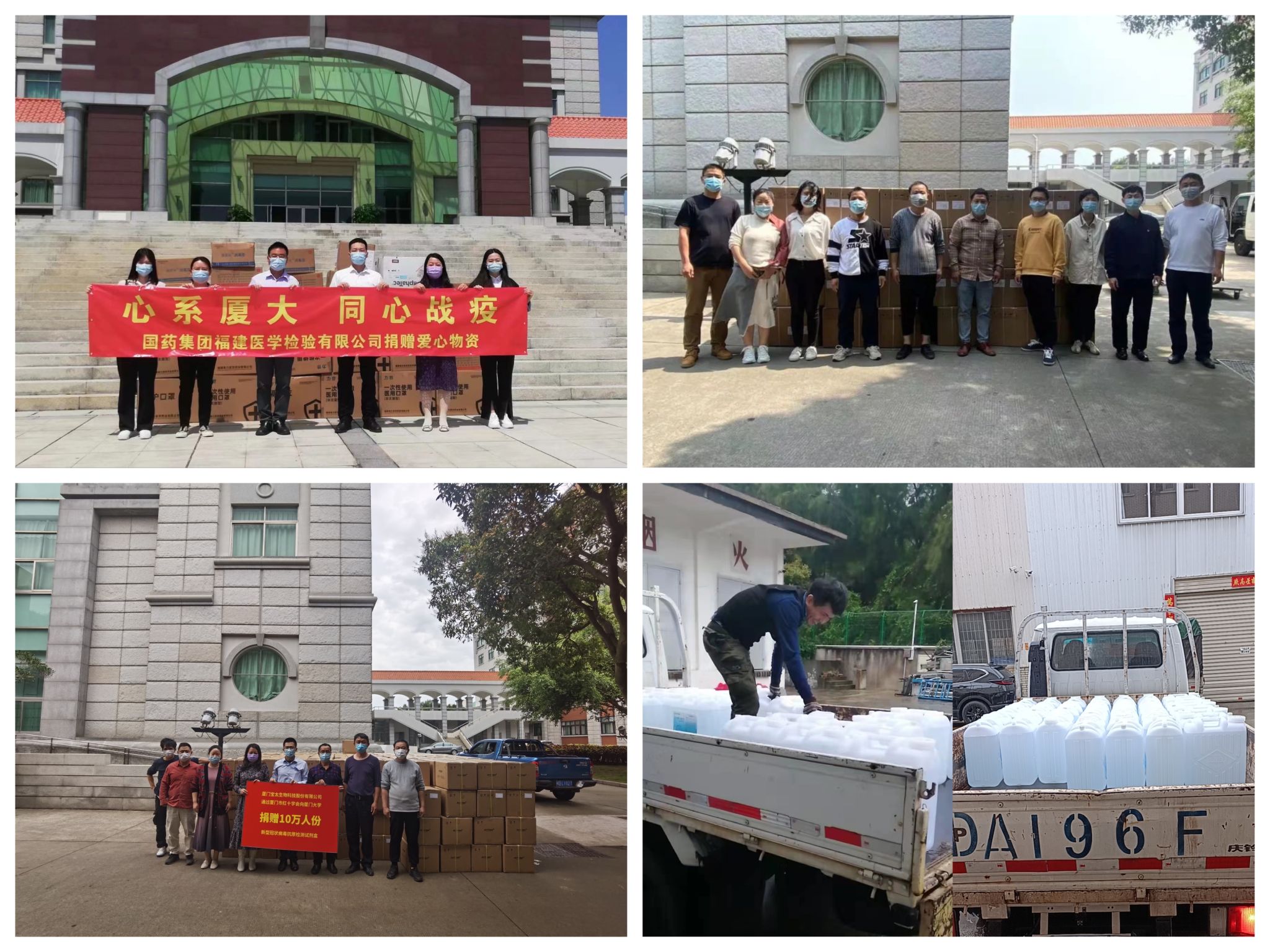 截至4月13日,资产与后勤事务管理处精准对接,先后收到校友企业、爱心企业捐赠的新冠抗原检测试剂盒、口罩、防护服、消毒液等一批防疫物资,切实将社会各界的关心关爱送到抗疫一线。其中厦门奥德生物科技有限公司第一时间捐赠122000人份新冠抗原检测试剂盒;厦门宝太生物科技股份有限公司在产品获批投入使用后立即捐赠100000人份新冠抗原检测试剂盒;国药集团福建医学检验有限公司捐赠价值3万元的防疫物资;福建省厦鹭电化有限公司捐赠1吨84消毒剂;保康世家(厦门)生物科技有限公司捐赠1吨次氯酸消毒液、2箱皮肤消毒液,同舟共济,助力厦园防疫工作。