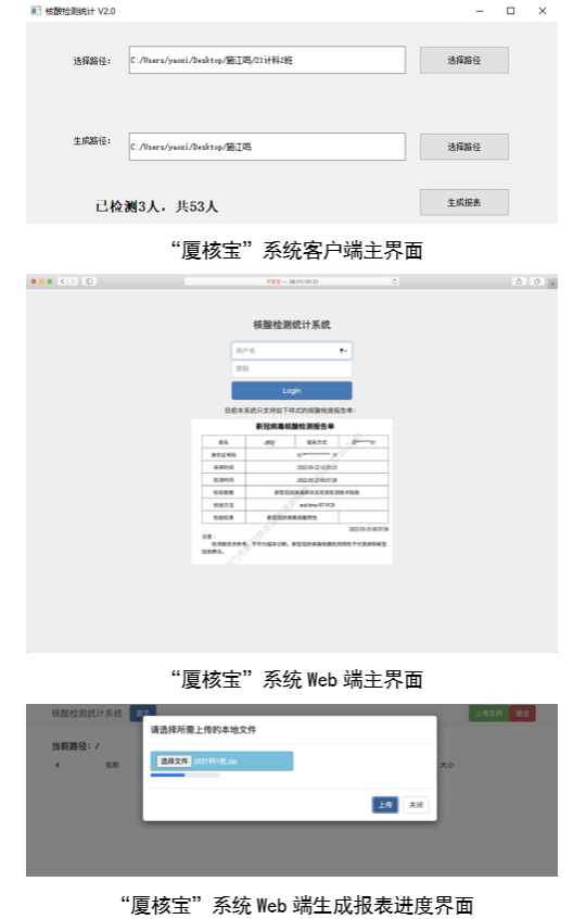 在精准调研具体需求的前提下,经过多次线上线下研讨,计算机科学与技术系教工党支部与学生党支部通力合作,自主开发出一套核酸检测信息核对系统“厦核宝”。该系统可以实现几分钟核查上百张核酸检测报告的功能,相较于人工核对,大大提升了核酸检测数据统计工作的效率和准确度,确保核酸检测应检尽检、不漏一人。“厦核宝”系统于4月8日上线试运行,并面向全校部分师生收集测试问题和修改建议。经过试运行和不断改进,4月10日该系统正式上线运行,大大减轻了学院核酸检测数据核对、统计工作强度,提高了检测数据统计的准确性和有效性。
