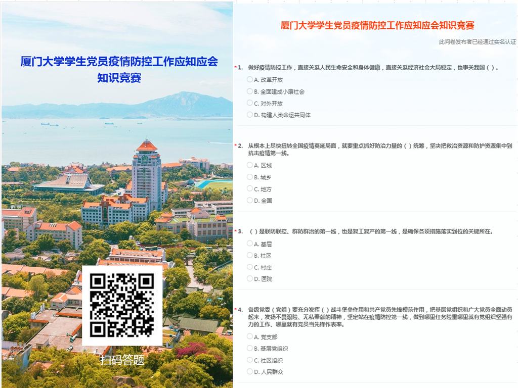 3月中旬以来,一场由厦门大学党的建设工作办公室、党委学生工作部主办,“扬才计划”学生党支部书记示范培训班、学生马克思主义理论研修班、习近平新时代中国特色社会主义思想青年研习社联合承办的理论知识竞赛在“云端”激烈打响。