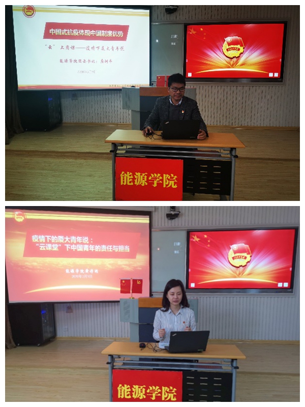 为坚决打赢疫情防控的人民战争、总体战、阻击战,进一步激发广大团员青年的责任担当,深入推进爱国主义教育,能源学院团委积极响应学院党委号召,迅速组织各团支部开展“疫情下的厦大青年说”主题微团课,鼓励团员就“中国特色社会主义制度优势”“新时代青年抗击疫情的担当作为”“云课堂开展的利弊”等主题谈感受、讲体会,在交流和互动中深化团员思想认识,提升政治觉悟。