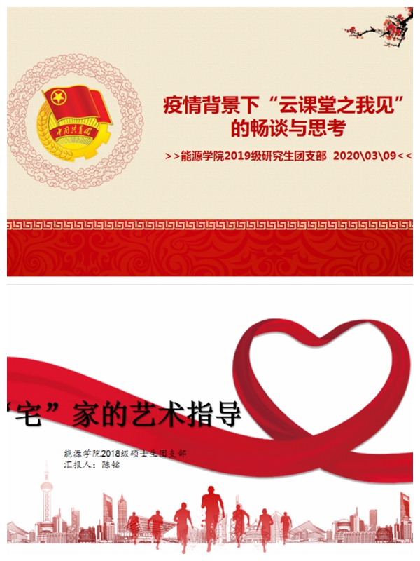 在“云课堂之我见”的问题上,2017级本科生、预备党员王旖婷同学认为:“在全国人民共同战疫的背景下,云课堂不仅能够有效减免师生大量聚集而造成的疫情暴发问题,也能在一定程度上保证学生学业不会受到严重影响,高校开展基于云课堂的教学方式实属明智之举”。而“‘宅’家的艺术指导”主题上,2018级硕士研究生团支书陈铭引用尼采“每一个不曾起舞的日子,都是对生命的辜负”的经典名言,勉励支部团员青年们转变观点,把精力放在科研任务上,从事文献查阅、分析总结、实验设计等工作,鼓励大家利用好“宅”家的时间,不让时间悄悄流逝。